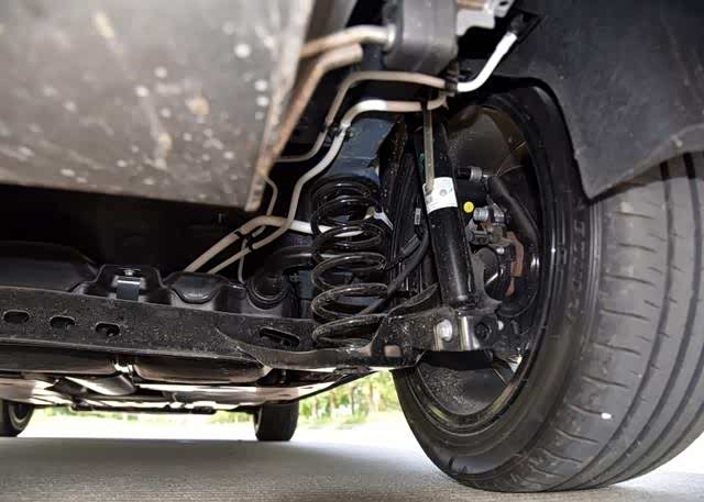 而下图的大众朗逸底盘结构更复杂,从车轮部分能清楚看到,各种导线排列分布。朗逸减震弹簧设计合理。底盘高强度钢材料用料十足,体现大众优秀的底盘实力。从大众朗逸的底盘就能一清二楚知道大众的底盘非常优秀。
