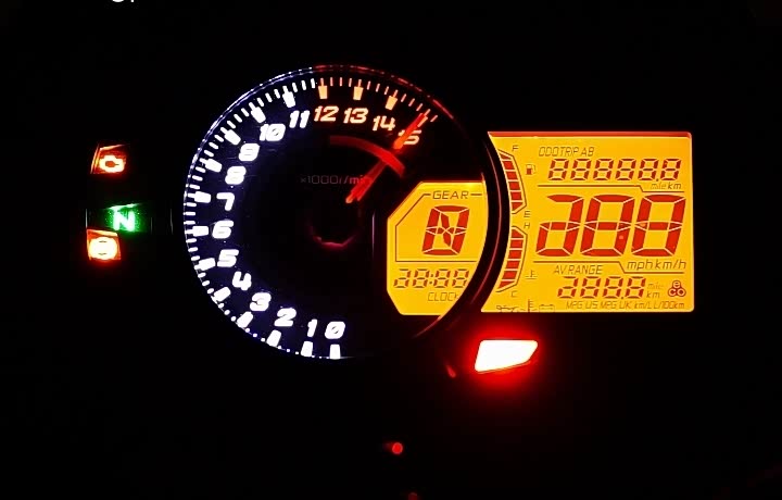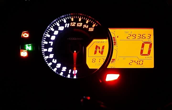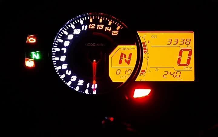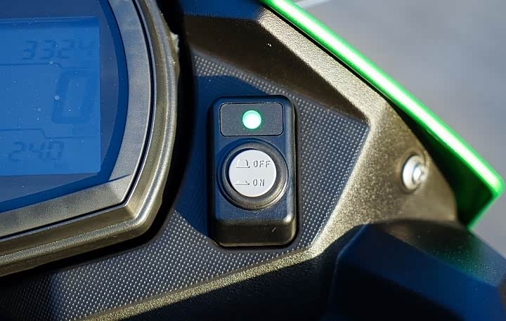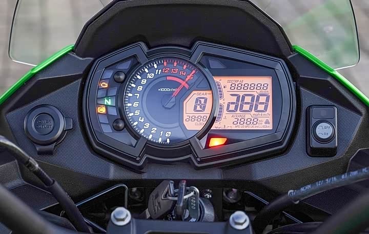 Versys X-300 Tourer的仪表板与Ninja400几乎相同,采用指针显示的转速表,引擎红线转速高达12,000转,左侧的液晶屏幕能显示时速、时间、里程、油量、水温等功能,此外,还有相当实用的档位显示与换挡提示灯。