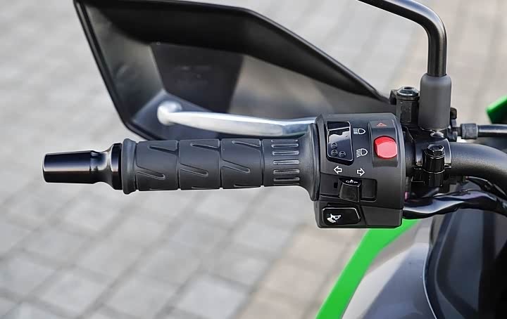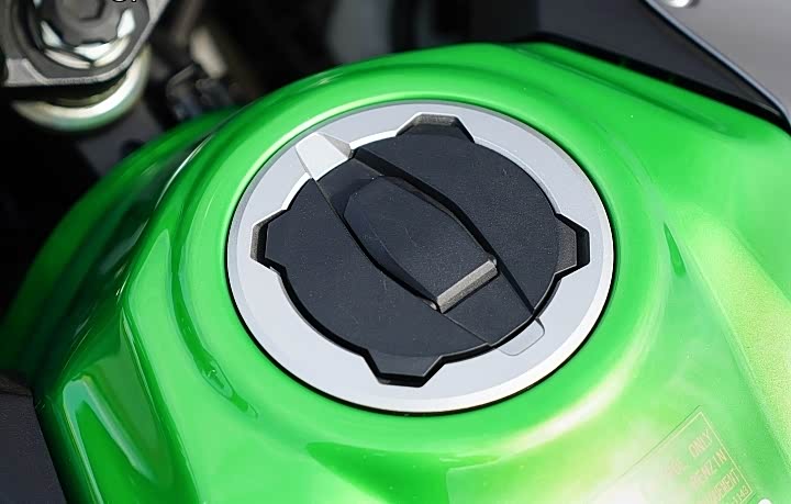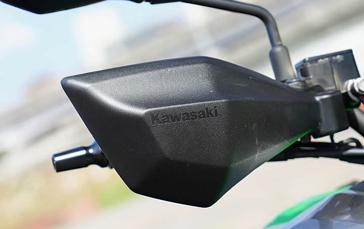 虽然排气量级别较为入门,但绿色与银灰色搭配的整流罩与油箱造型相当壮硕,再搭配上原厂标配的LED雾灯看起来气势更强,原厂油箱容量为17升,与油箱两侧的塑料油箱罩结合颇有旧款Ninja 1000的肌肉线条。