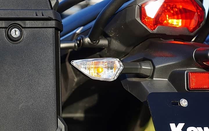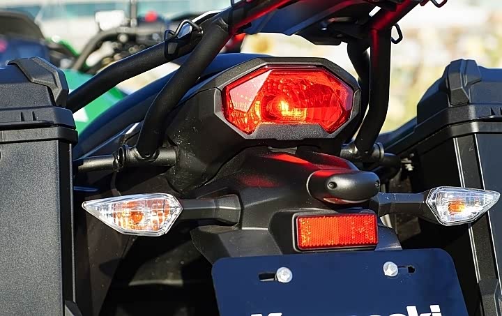 因为原厂标配侧箱的关系,Versys X-300 Tourer车尾看起来相当宽,但侧箱两侧的宽度符合交通法规的限制,后尾灯与后方向灯皆为卤素灯泡。