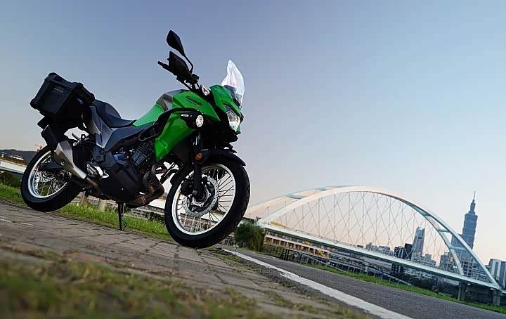 Versys X-300 Tourer在扮演Versys车系排量最小的角色,虽然只有区区300c.c.排气量,但因为多功能车本身的体型特色,加上原厂标配的保险杠与侧箱,Versys X-300 Tourer看起来仍然相当壮硕,而Versys X-300 与对手相比最大的优势就是配置齐全,搭配上绿、银、黑交错的板件看起来相当活泼。