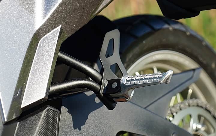 除了众多对越野、旅程有帮助的配置之外,Versys X-300 Tourer还标配了非常实用的中撑,在同级别产品中也是诚意十足,尤其在较不平坦的路面或侧箱满载行里的状态下,中撑都可以发挥更稳固的驻车效果。