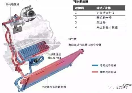 4、经过增压空气冷却器前后温度小于12℃。发动机熄火后,如果水温高于100℃,电子水泵会继续工作。