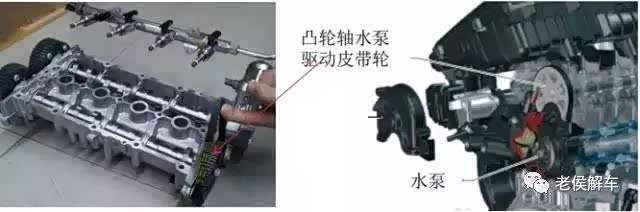 冷却水泵由凸轮轴后端通过皮带驱动,该皮带也是长寿命类型。