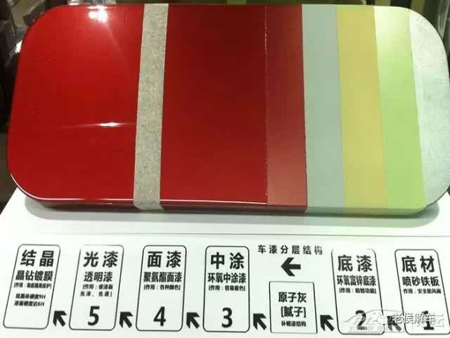 大家可以看到,汽车的磷化、电泳只有汽车制造厂能做,其它的任何改装店、修理厂、4S店都是做不到的,他们所能够修复的只是上面的3层(中涂层、色漆层和清漆层)。