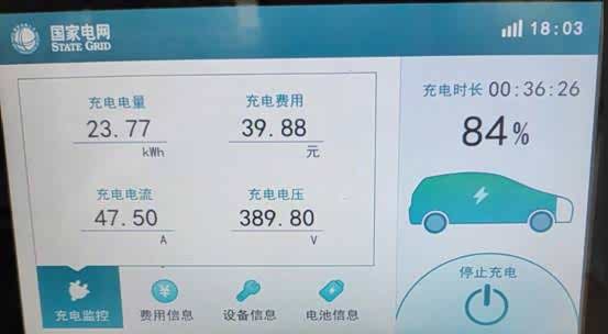 当SOC电量达到百分之84左右的时候,快充回落至47.5A。然后这个充电电流会一直保持至电流充满。特来电直流充电桩充电电流与国家电网充电桩大致一致,电池温度也一直控制在最合适的温度下。