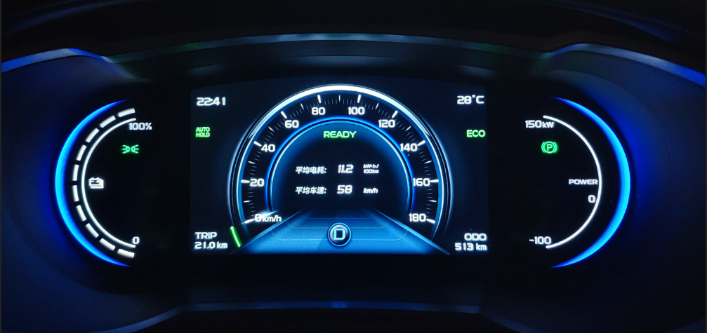 通过上表可以得出吉利帝豪GSe在笔者驾驶中,NEDC续航为353公里的帝豪GSe在市区工况下,全天开空调时,可驾驶续航约为330公里左右;中午温度较高后开空调后,可驾驶续航约为350公里左右;天气凉爽,不需要开空调的情况下,可驾驶里程约为370公里左右;若当天下雨或地面积水的情况时,可驾驶里程约为330公里左右。市区工况下帝豪GSe百公里电耗基本上维持12-15度电/百公里的范围。