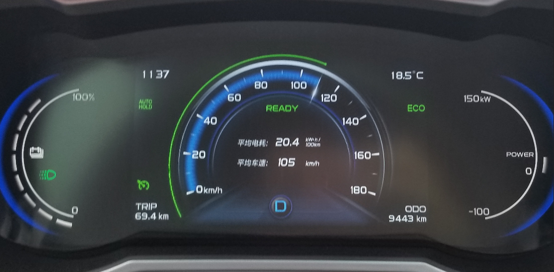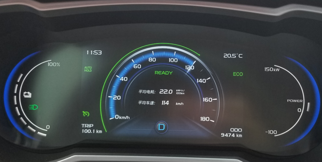 以上为笔者驾驶帝豪GSe市区环路测试电耗数据以及根据帝豪GSe自身电池能量所计算的匀速60-80公里/小时下的续航里程,受限于环路限速,更高的速度笔者在去参加环洞庭湖拉力赛中的路途中为大家测试了匀速100-120公里/小时下百公里电耗。另外,以上数据受限于拍摄手段和天气原因,仅供当下时段参考。