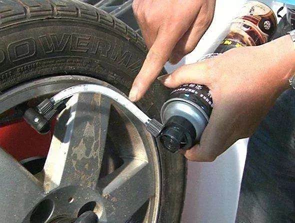 补胎液就比较新奇了,将罐子摇匀后,然后对着轮胎的气门嘴直接往里面喷进去,补胎液会随着漏气的气流直接流到缺口,自己把漏洞补好。
