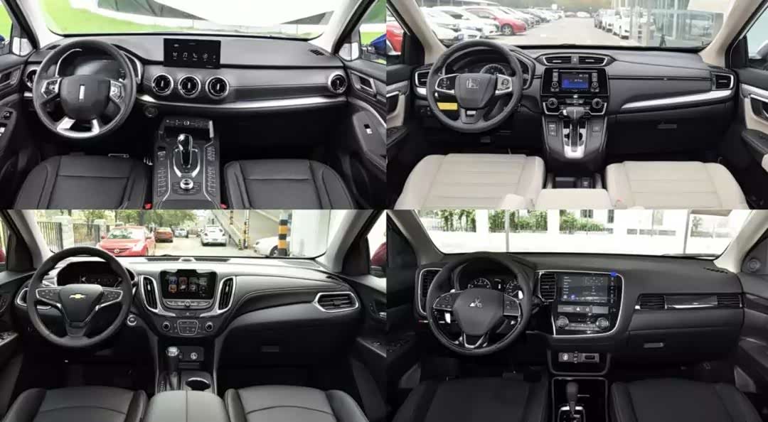 相比外观,几款车的内饰风格差别更大,CR-V和探界者都是中规中矩的布局,用料和做工不会让人眼前一亮,与它们较高的售价相比多少有些不符,而且三菱欧蓝德的内饰明显偏老气,这款车相对比较低的价格,在内饰上也体现出来了。