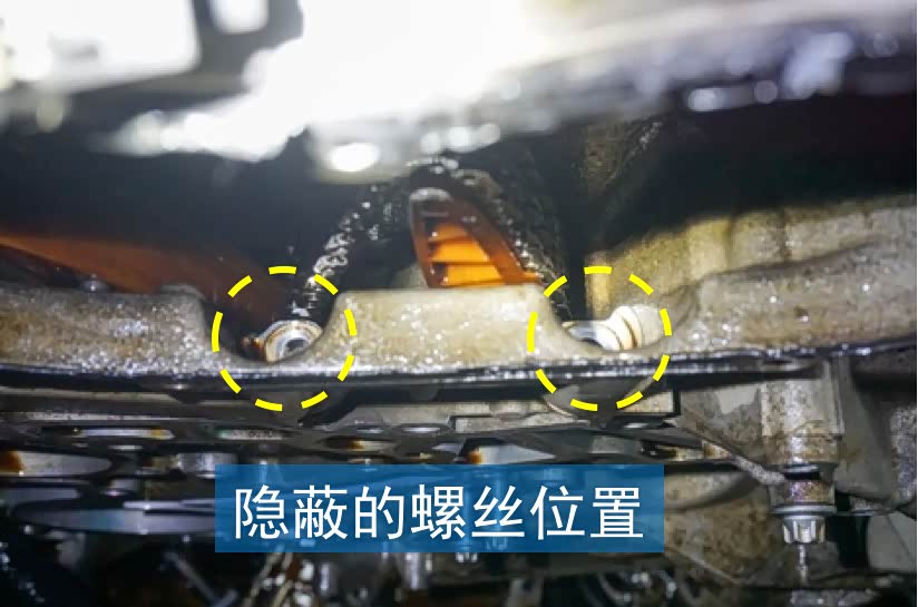 拆卸M272的正时系统的盖子也要费点力,发动机前端的盖板都需要拆掉,而且在左右链轮下方盖板内还有两颗较隐蔽的螺丝。
