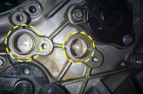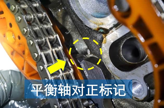 安装新的平衡轴,可以看到那圈波纹形状的小部件离链条并不远,链轮径向磨损到一定程度后链条就会压到它,长期如此再加上高速的旋转,最终就被压碎掉入了小油底壳内。