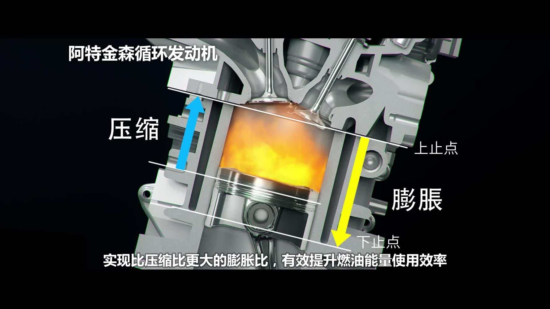 先说阿特金森循环。目前,把阿特金森循环发挥到极致的是丰田和马自达。阿特金森循环的实质就是膨胀比大于压缩比。采用进气门晚关的方法,让缸内的混合气被压回进气管一部分,这样活塞的加速做功冲程就长于压缩冲程。所以,阿特金森循环的好处就是发动机的效能更高,也就是热效率更高。