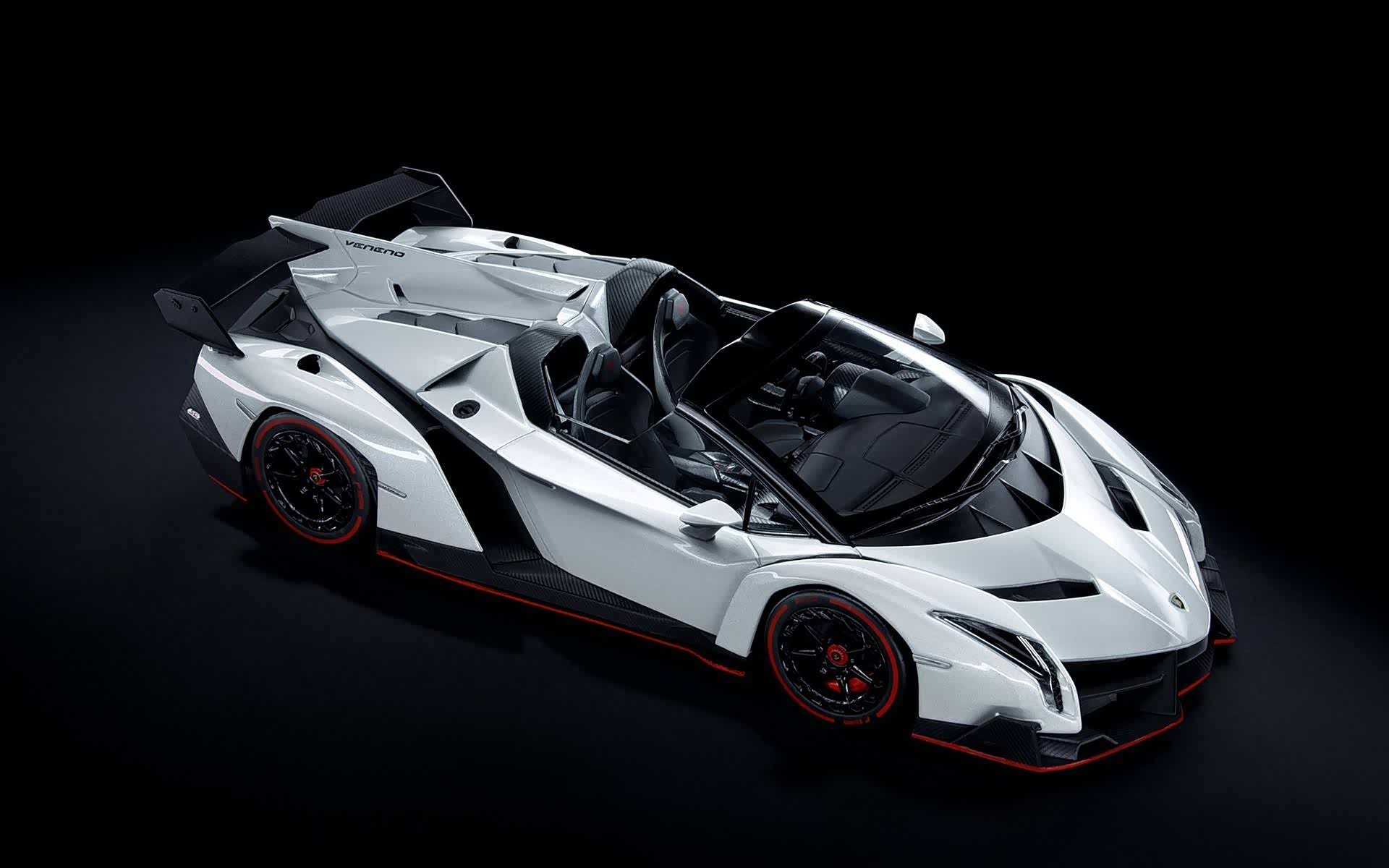第二名:兰博基尼Veneno敞篷版(第一眼看到兰博基尼Veneno Roadster的时候,你肯定会被那夸张的前后扰流板所吓倒。的确,宇宙飞船般的设计只为将赛车的空气动力学效率应用于道路用车,每一处细节都在追求极致——超乎寻常的磅礴动力、最恰当的下压力、最微小的阻力以及对高性能发动机的完美冷却能力。而家族特征明显的前后Y型大灯以及獠牙式引擎盖,让人一眼就能认出它就是一辆兰博基尼。)