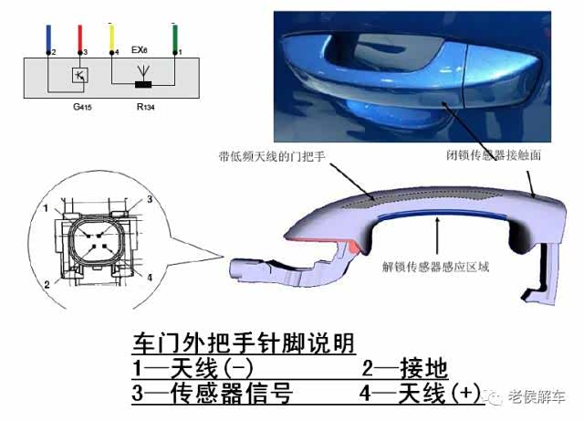当驾驶员手部靠近车门外把手时,车门外把手中传感器的电容发生变化。进入和起动授权系统控制单元识别到传感器的电容变化,并认为有人靠近车门外把手或者说有上车的意愿。