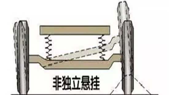 非独立悬挂可以理解为两个车轮间有硬性连接物,会发生相互干涉。但其结构简单,有更好的刚性和更大的行程,但也并不绝对。