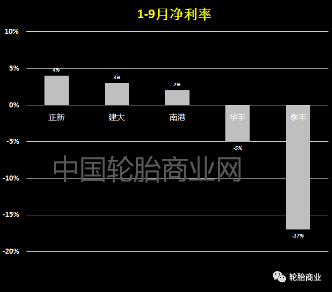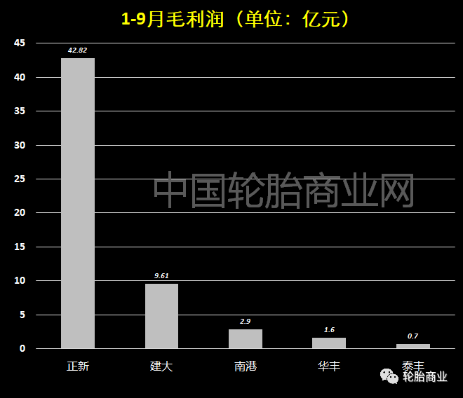 毛利润方面正新依然遥遥领先,与去年同期相比,五家企业均出现不同程度的下滑,其中泰丰轮胎降幅最大,这也最终导致其严重亏损。