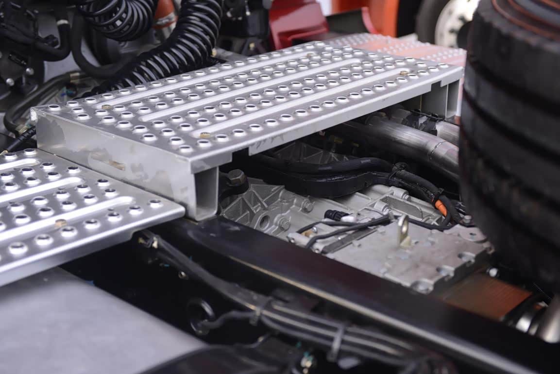 这辆X6000在车架的左右两侧加装了一对侧裙,一方面提高车辆的美观程度,另一方面可以减小大梁左右两侧的挂件在行驶中造成乱流。左侧的侧裙还设计了两级踏板,与凹槽油箱搭配使得阶梯深度非常到位。