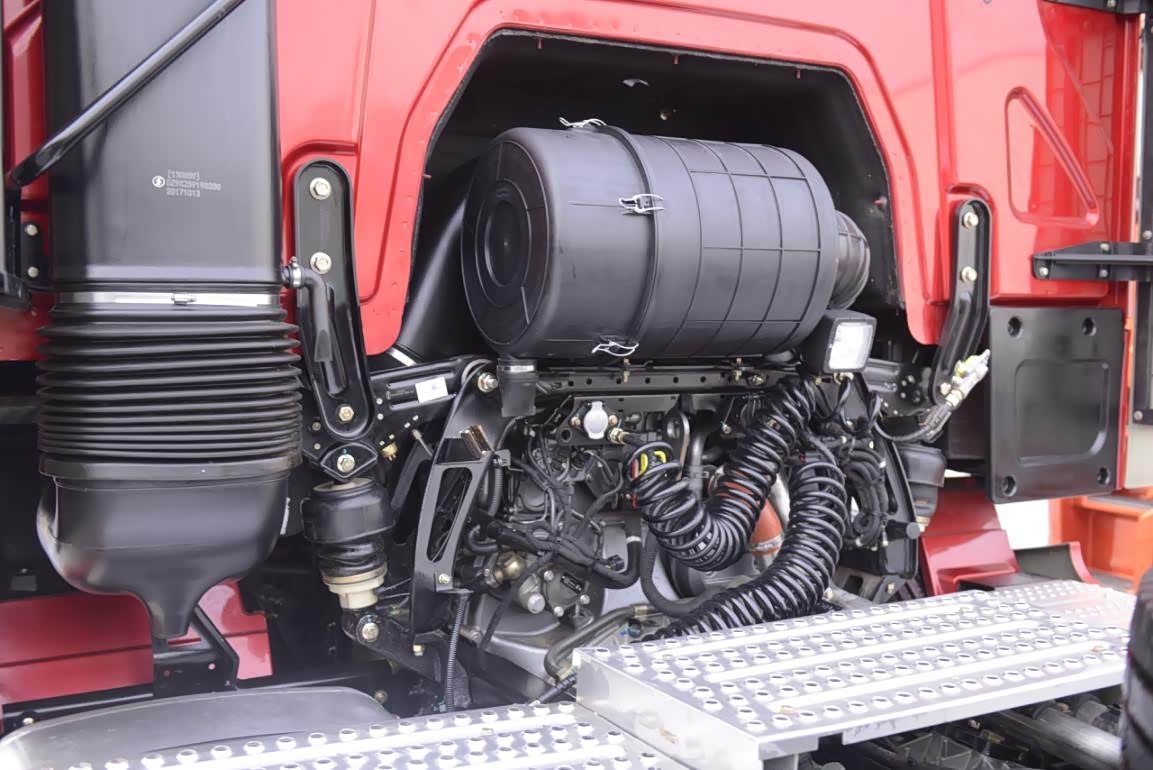 驾驶室是陕汽6000系列车型的一大突破,高度达到了前所未有的4米。而且驾驶室的零部件集成和美观性相比之前产品也要优秀很多,比如说空滤安装到了发动机后面,进气道紧贴着驾驶室的左侧,进气口则位于导流罩的左后方。