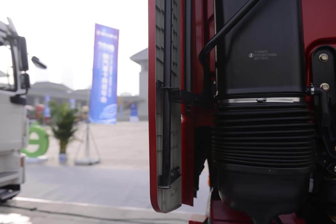 在本次年会上,陕汽所有的车型都优化了挡泥板。在原有的挡泥板上面覆盖了一层类似毛刷一样的“垫子”,一方面可以吸收石子之类硬物撞击的能量,还可以在雨天收集水分,把水雾引流到地面,保持车身、车牌、车灯的清洁,确保行车安全。