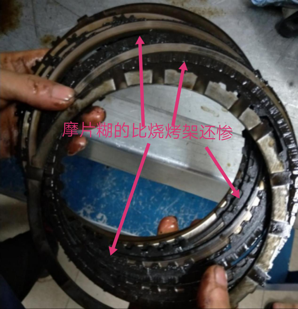 假油的注入导致变速箱里面锁止离合器片烧蚀磨损厉害的,