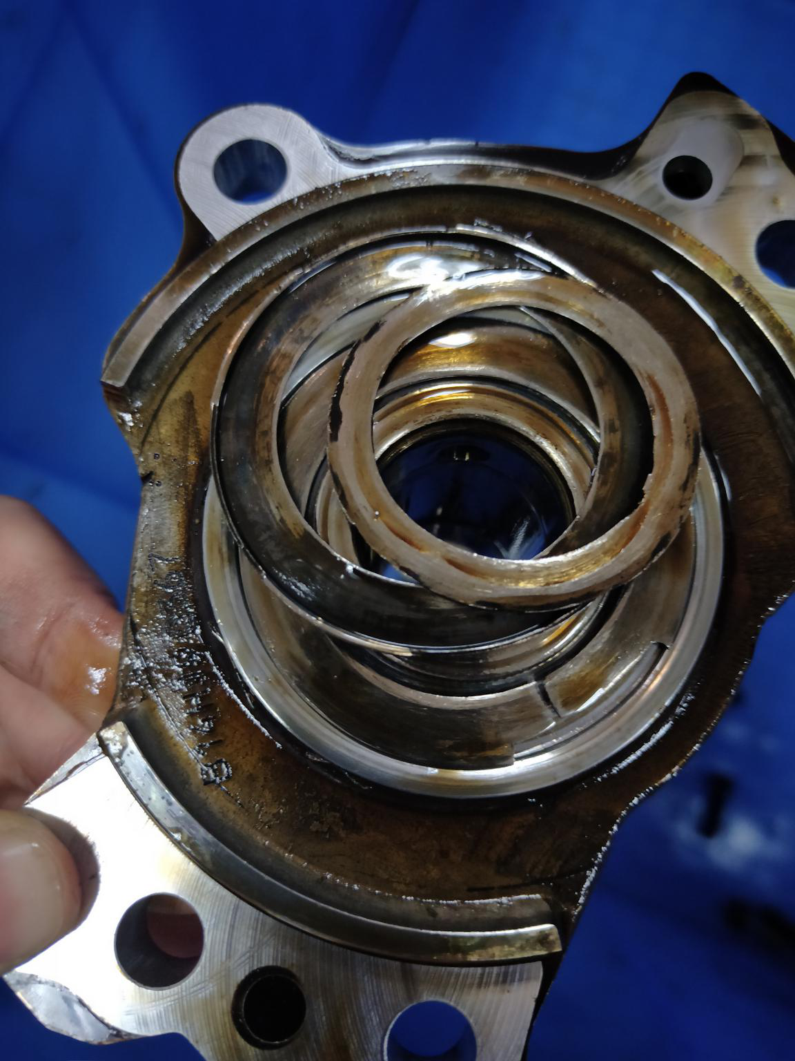 再来几张特写:止推垫片和轴承已经磨得稀烂了