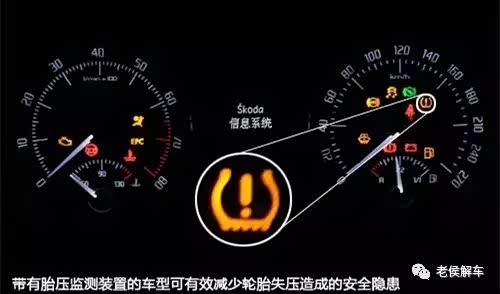 在这里,他说的那个黄色的灯就是胎压监测报警灯。一般情况下,它如果点亮,就说明轮胎的压力异常,需要停车检查。那么我为什么告诉他没问题呢?换个轮胎怎么还会把胎压监测系统激活呢?且看老侯下面的详细解析。