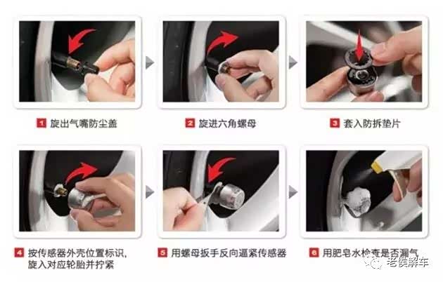 每一个传感器都内置在轮胎里位于气门口附近,原厂的会与气门做在一起,每一个单独的传感器靠电池供电,将测量的胎压数值通过无线传输至接收器,然后显示出来。