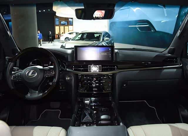 内饰的个性化设计得也很到位,前排中控台采用哑光黑色装饰,局部又用钢琴烤漆色搭配,方向盘还有实木装饰,这些与普通版LX相差无几,但它的座椅以及车门采用了特色的月光白皮革,不仅质感提升了,还营造出一个温馨的环境。而配置上除了标配四驱空调,后排娱乐系统,19个马克莱文森音响扬声器之外,还配备极具仪式感的“LX”字样的迎宾灯,这算是同级SUV中的一大特色。