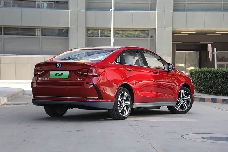 EU5侧面呈现前低后高的动感体态。双腰线设计,让侧面线条更加连贯硬朗。EU5车身尺寸4650*1820*1510mm,轴距2670mm。