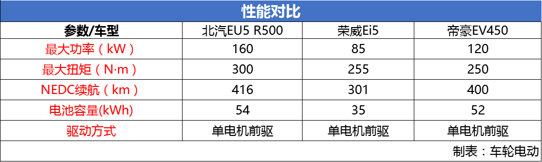这三台车都属于出色的能耗控制,如果推荐购买的话,我会推荐帝豪EV450和北汽EU5,相对同价位来说,电池容量越大,对动力和续航都更有保障。