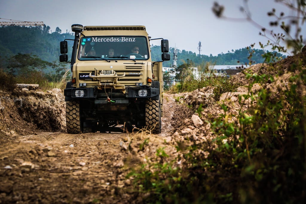 对乌尼莫克发动机高扭矩低功率的设定而言,速度不是必要的,强大的轮上扭矩才是其真谛。在发动机810N·m强大的扭矩输出加之轮上减速放大的扭矩面前,更大的坑,更陡的坡,更深的水以及未知的路况才是其该走的路,颠簸的非铺装路面简直就如履平地。