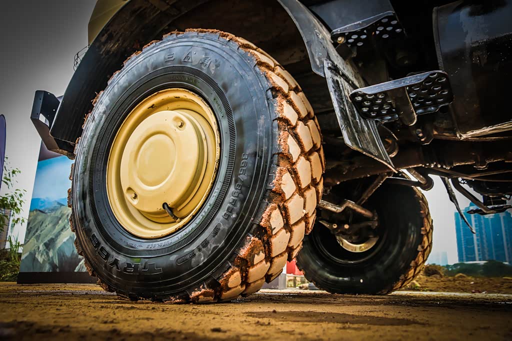 其实,在轮胎的选择上并不太多,国内、外很少有品牌来制作和经销乌尼莫克这样尺寸的轮胎。在这辆乌尼莫克U4000的救援车上搭配的是国产三角轮胎,轮胎的型号为365/20 R20的TRY66特种轮胎。