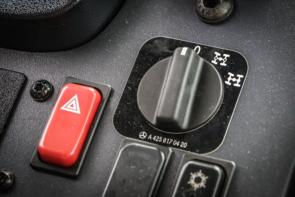 而在各种极端路况下,允许前后轮胎形变增加附着力能有效提高乌尼莫克的越野性能,因此随时充放气就是十分必要的了。在仪表盘左侧,就有前桥和后桥可单独控制充放气的控制按键。而这个功能无需停车后对车轮进行充放气,在行进中即可进行操作。