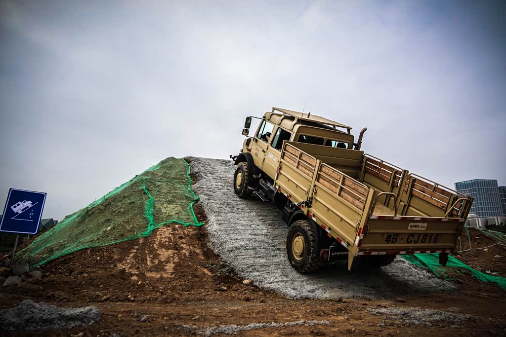 强大的扭矩推动庞大的车身轻轻松松骑上30°的侧坡,对于30°的侧坡而言,只要驾驶者把握好方向盘方向,稳住油门,骑跨上高40厘米,30°的侧坡对于乌尼莫克易如反掌。乌尼莫克的理论极限值是可以在38°的侧坡上行驶。