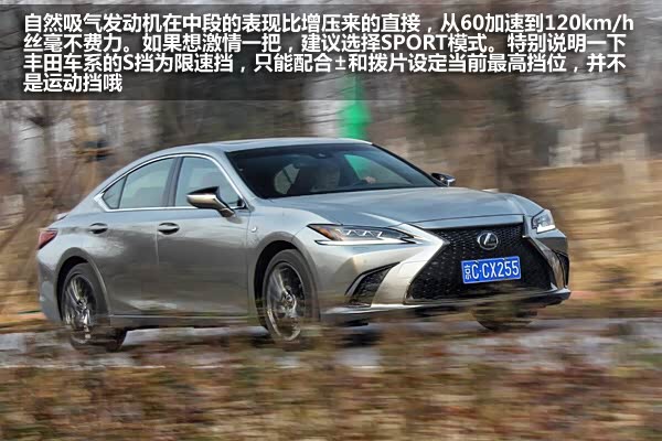 ES260配有经济、普通以及运动三种模式,会根据驾驶员选择的模式,匹配车辆动力系统的响应状态与逻辑。SPORT模式下,车辆在得到急加速指令后变速箱会降3-5挡,当转速超过5000rpm时,全新ES激情的本性被点燃。与涡轮增压发动机输出特性不同,ES260不会让你在油门踏下一秒后再感受推背,而是瞬间喷涌出“高山流水”般的动力,从而让你品尝到持续加速的快感。