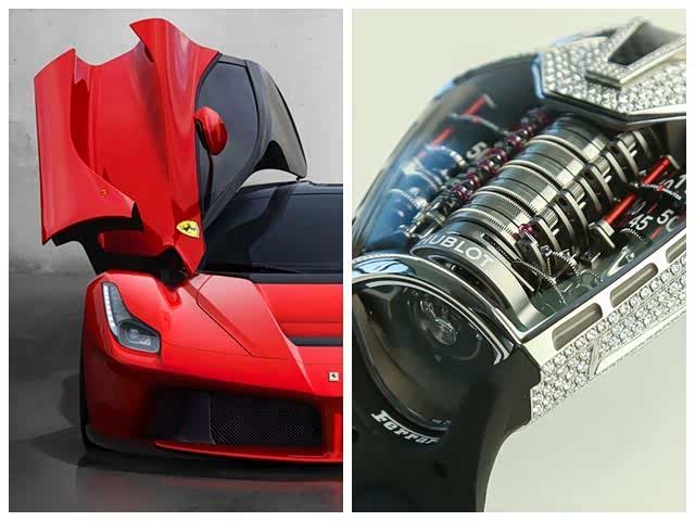法拉利自1993年起便与GP芝柏表签约合作,GP芝柏表在自家产品中加入了大量的法拉利元素,比如在背面印刻法拉利logo,表盘采用了法拉利标志性的红色,不仅增加了辨识度,而且极具收藏价值,最经典的例子就是GP芝柏表Ref.4980被拍卖到11万港币(估价上限为9万港币),但两者在2004年便结束了合作关系。往后,法拉利又与宇舶表达成了合作关系,而宇舶表的做法更加激进,其MP系列905.JX.0001.RT的设计灵感来自于法拉利 Laferrari的仰视图,内部布局一目了然,机械感极强,至于价格嘛……够买一辆法拉利了。