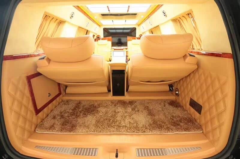 配置:前后舱阅读灯、前后独立控制对讲电话(升级版)、中间电动私密升降分隔屏、220V电源预留插头、32寸曲屏电视、电视可以通过网线网络上网、迈巴赫豪华真皮头等舱座椅、航空座椅两边有无线充电装置、座椅按摩加热及电动调节褪托、柚木地板、卫星收音机、音量带速度感应调整、后舱7彩16色LED灯饰、电动可升级办公桌板、后舱预留游戏机及电脑接口、防弹后尾门、电脑NGA接口/车载电脑win7