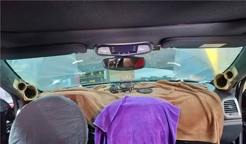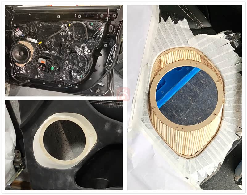 为了更好地解析德国 RS皇太子三分频的音质效果,把中音和高音倒模在A柱上。A柱未倒模效果图