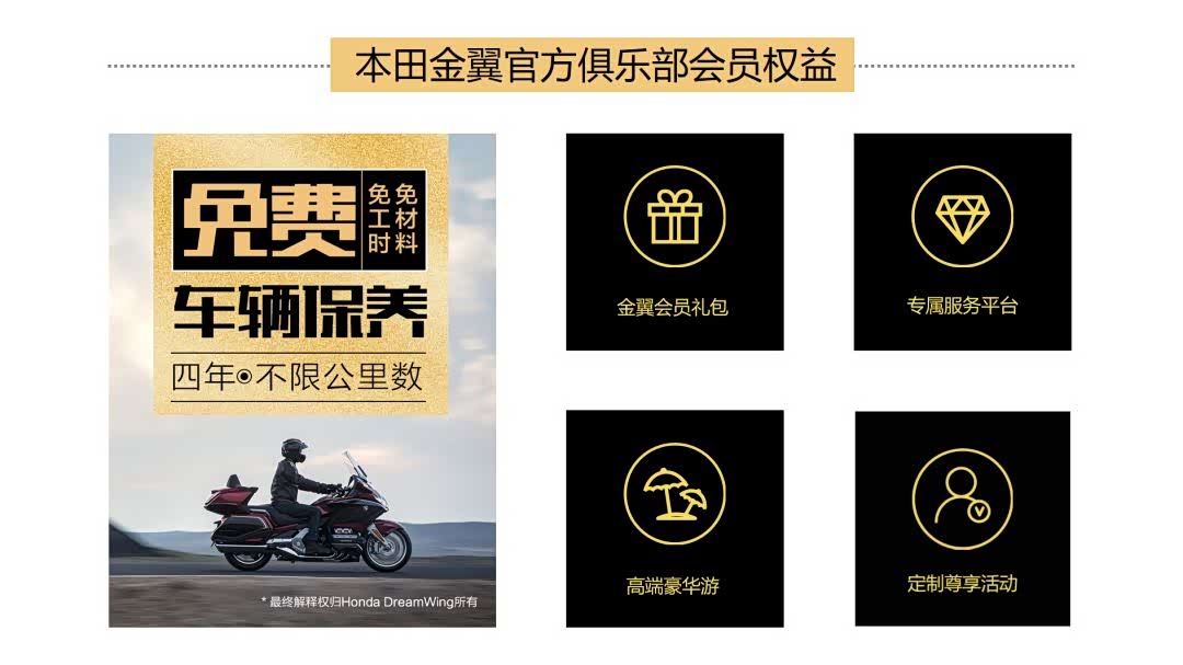 摩托车中心长永井康晃宣布在中国成立唯一的官方用户俱乐部——“本田金翼官方俱乐部”,为所有会员带来包括四年不限公里数免费车辆保养及丰富的会员权益。