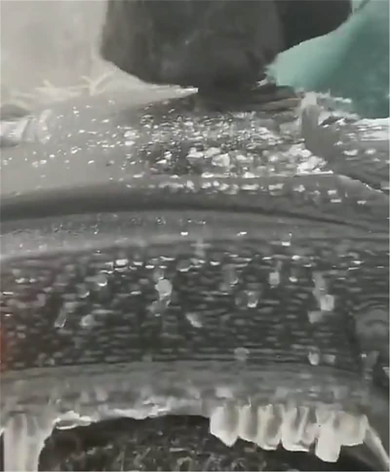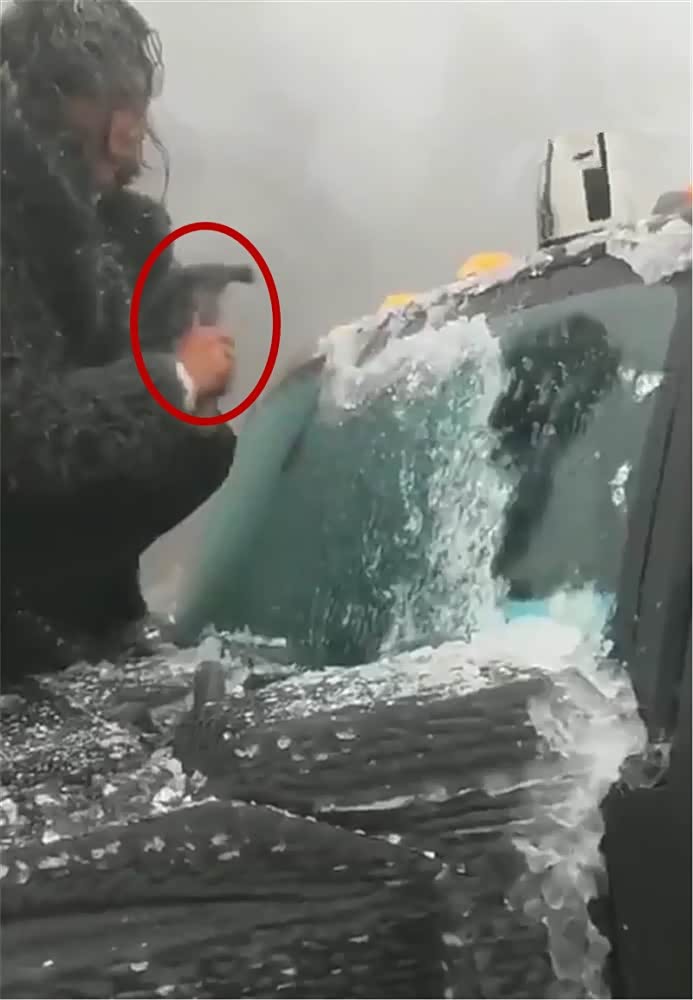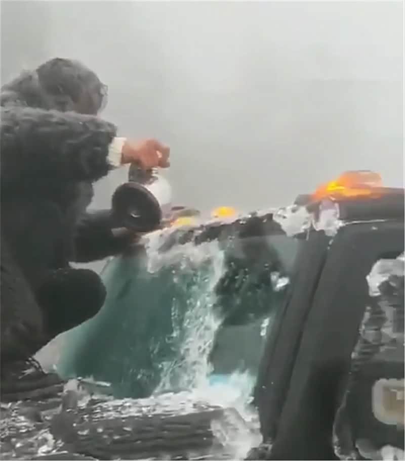 原来,车辆被冻住的情况下,一旦大量泼热水的话,容易导致挡风玻璃直接破裂,损伤上千元,不划算。所以悍马H2车主只能缓慢解冻了。