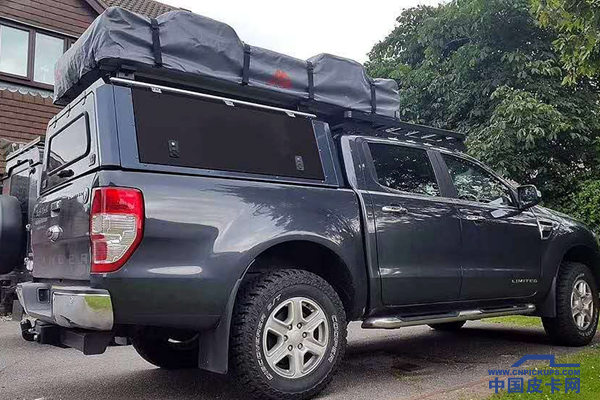 福特Ranger配上高盖后是不是特有范儿,此车改装的特点是双梯帐篷,但是帐篷也是软顶的,收纳时与图一里的大众Amarok一样相对复杂些。