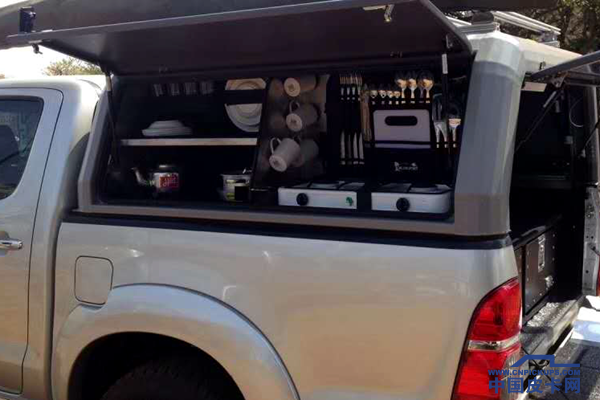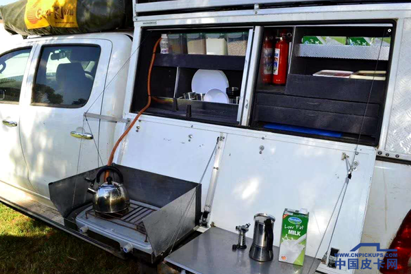 这个更有创意,后货箱盖内部加装了厨房用具,大大增加野外露宿的实用性。