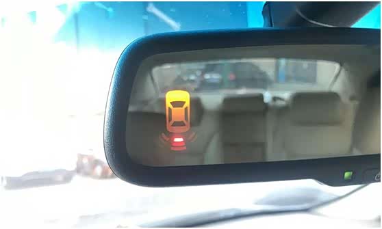 根据这几天开车的经验来看,当车内后视镜上的倒车雷达显示红色的时候,已经撞上了。
