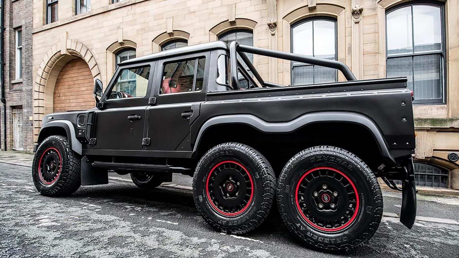 除了人尽皆知的奔驰AMG 6X6,大家应该对这台路虎卫士6X6有点印象,其实这是Kahn Design曾在日内瓦车展亮相的展车。三轴的结构使得外形格外霸气,动力系统更是换上了由通用提供的LS3 6.2升V8发动机。这款发动机的最大输出功率为430匹马力,经Kahn Design调校升级后提升到了500匹。底盘也做了升级,增加的一个后轴也能传递动力,配备了一台六速自动变速箱以及两级分动箱和差速锁,这也使得它成为一台名副其实的卫士6x6。