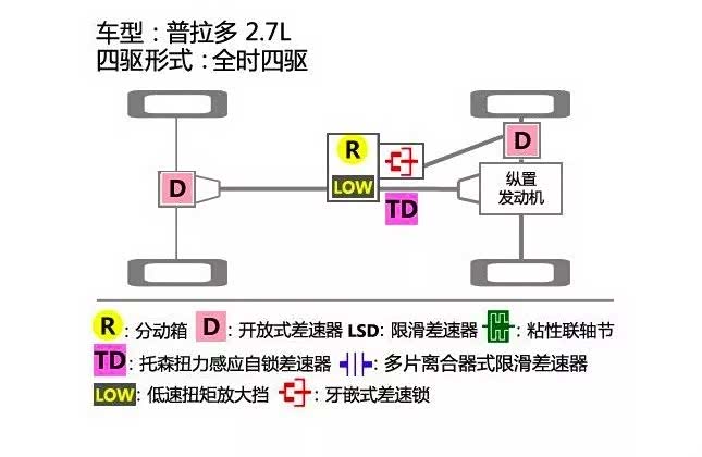 非承载式称身和整体桥悬挂的经典搭配:普拉多的越野性能在界内早已是名声在外,搭载非承载式车身和前双叉臂式独立悬挂、后四连杆整体桥式非独立悬挂。