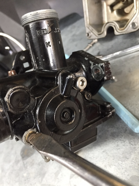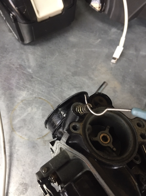 左边的混合比螺丝有个弹簧滑丝要注意,右边的怠速螺丝的弹簧已经老化了。