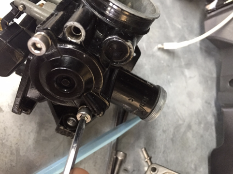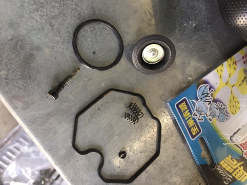混合比螺丝也要拆下更换里面的弹簧跟橡皮圈,怠速螺丝也要拆下更换弹簧。