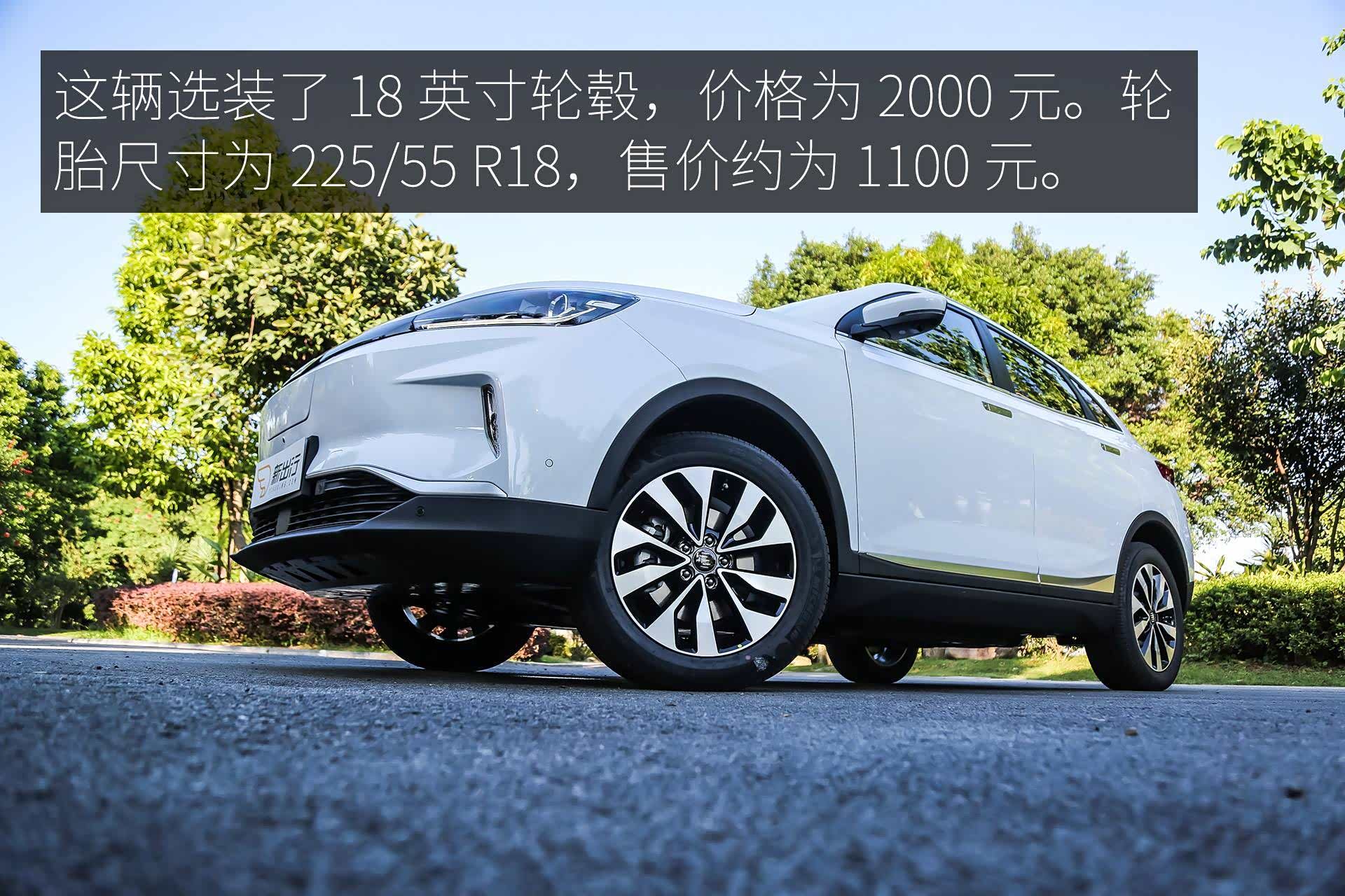 威马 EX5 标配的是 17 英寸的轮毂,我们这辆选装的是 18 英寸的轮毂,选装价格为 2000 元。而轮胎的尺寸为 225/55 R18。轮胎型号为米其林浩悦 Primacy 3St 系列,售价大约为 1100 元左右。值得注意的是标配的 17 英寸轮毂也是采用米其林的轮胎。