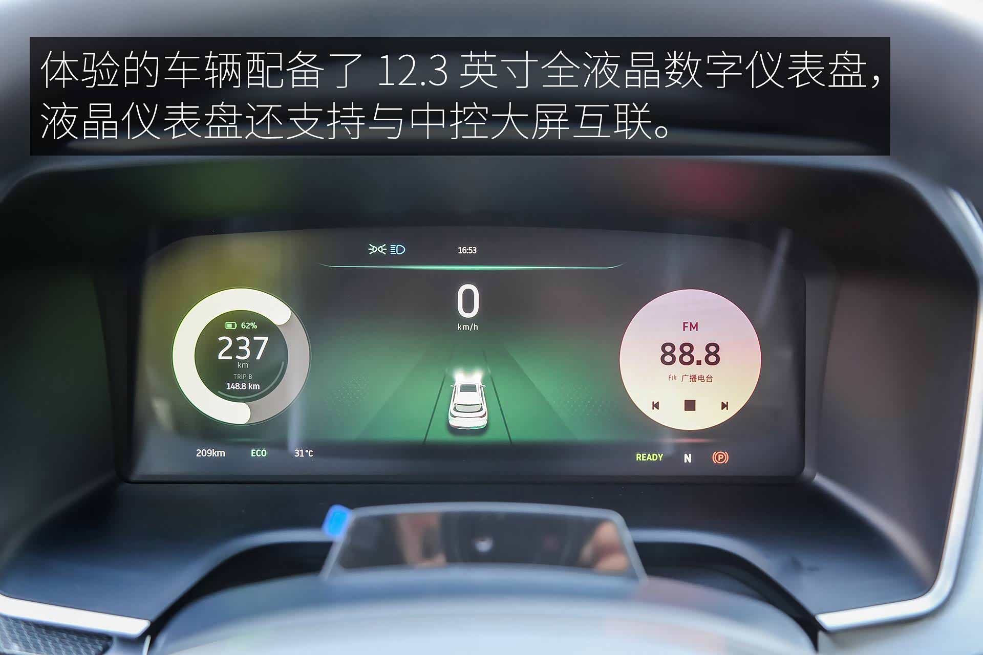 驾驶模式调节和动能回收调节集中在旋钮式换挡机构后方,两个功能集成在同一个功能键上。驾驶模式共有节能和运动两种,轻按下去即可切换节能模式或运动模式;而动能回收则是旋转旋钮,有一级和二级两个动能回收档位。
